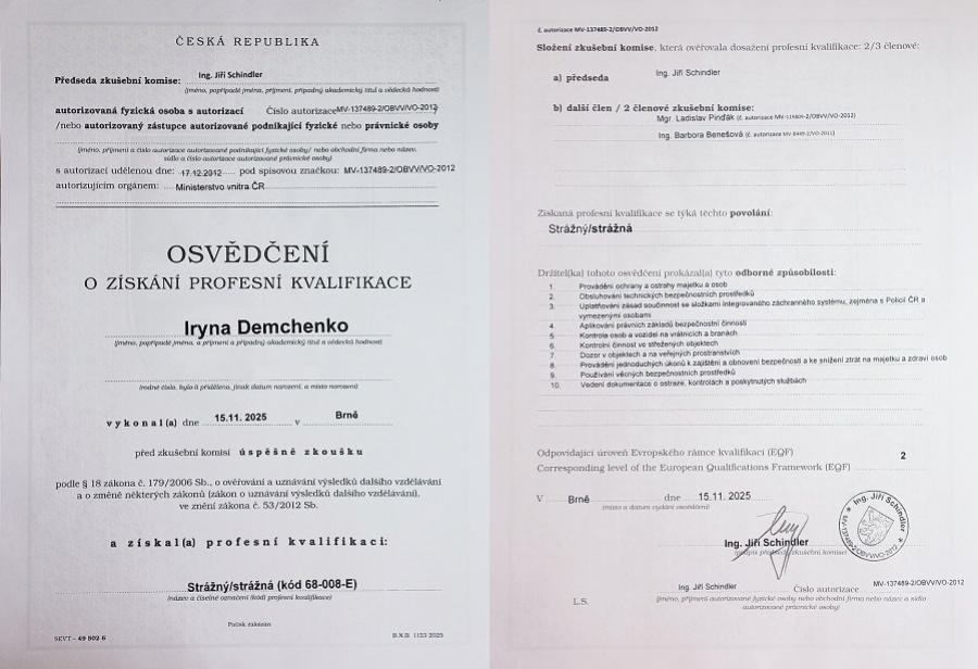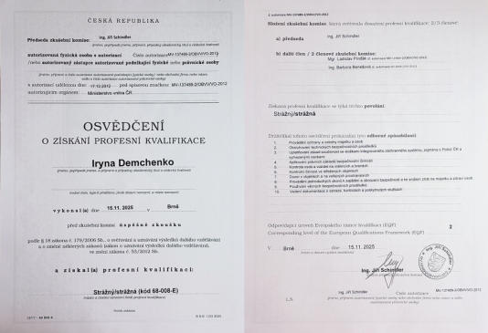 Majitelka společnosti získala osvědčení o profesní kvalifikaci